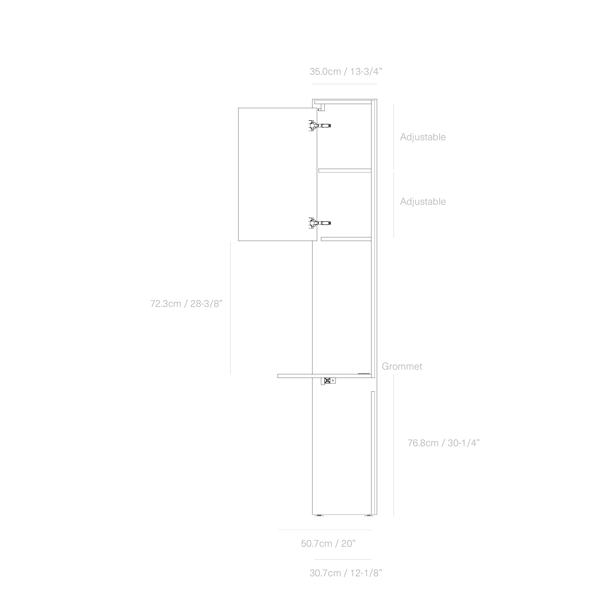 *All widths are measured with two cabinet sides, each cabinet side measures at 1.9cm / 3/4” -