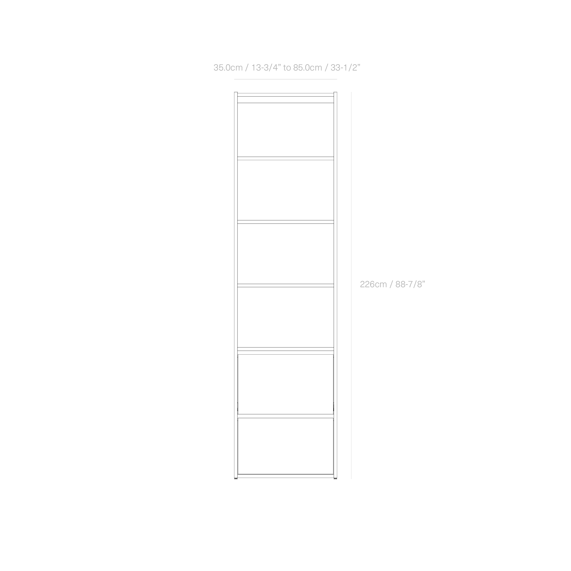 HEIGHT: 226cm / 88-7/8” (+1.3cm / +1/2” levelling)