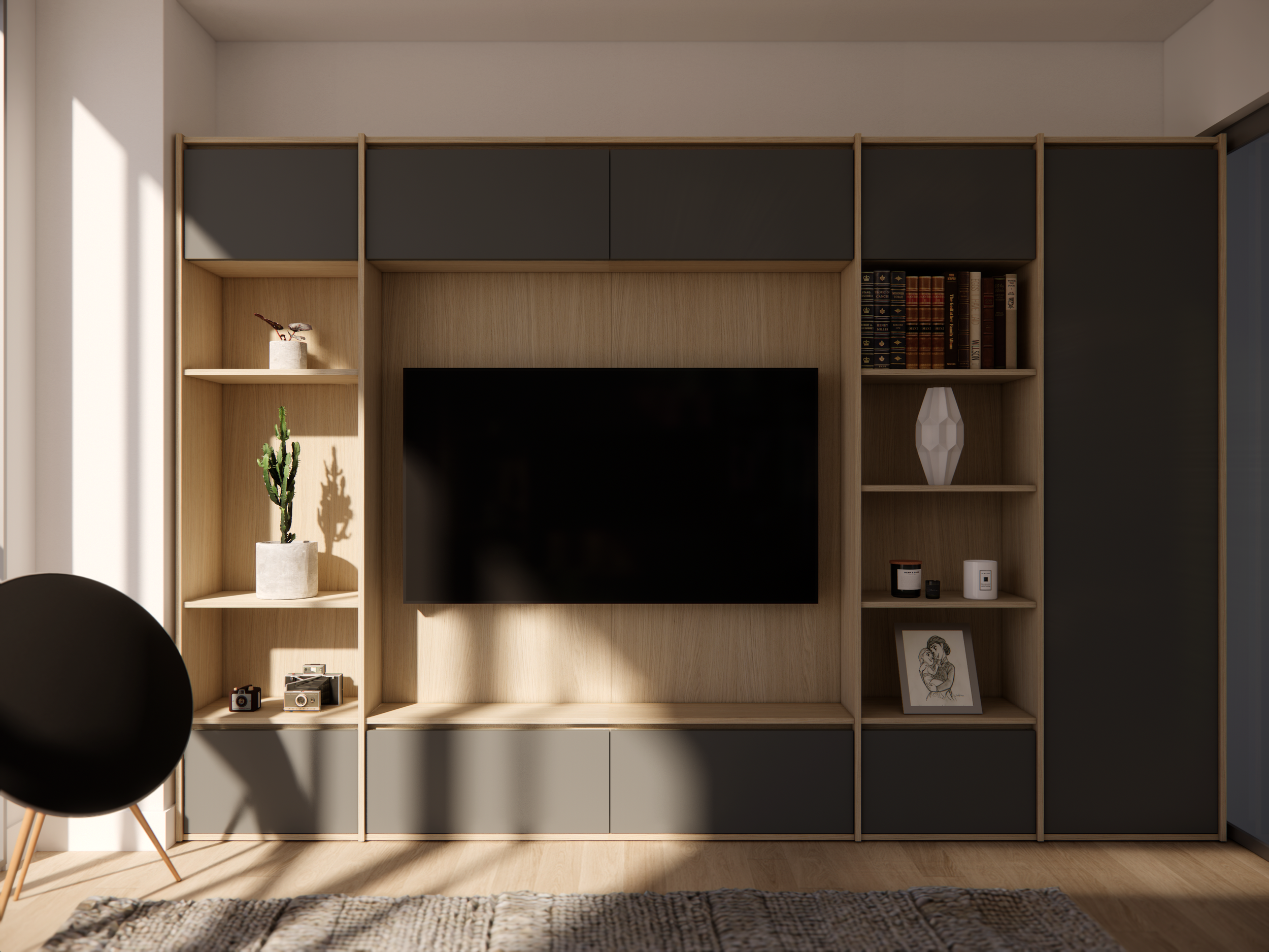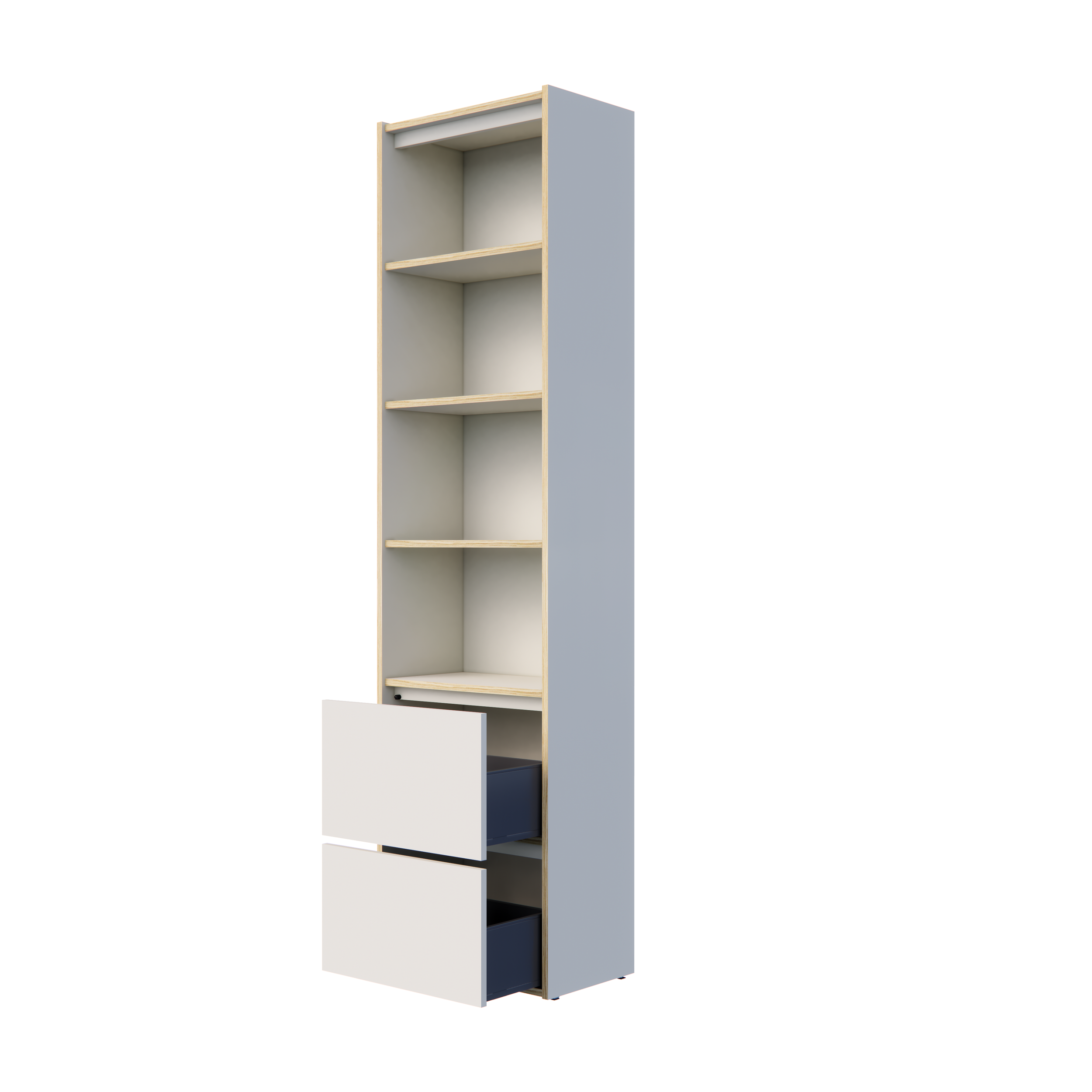 GLIDE 35 is a sleek two-tier drawer unit designed for both organization and style. Outfitted with Blum Legrabox drawers, it delivers smooth, precise motion and lasting durability. The shallow drawers are ideal for stationery and small essentials, while the open shelf above offers space to display your favorite objects. This thoughtful balance of open and closed storage keeps clutter hidden while showcasing what matters most. Pair it with PARTY 35 for a smart, compact office setup that blends functionality with modern design.