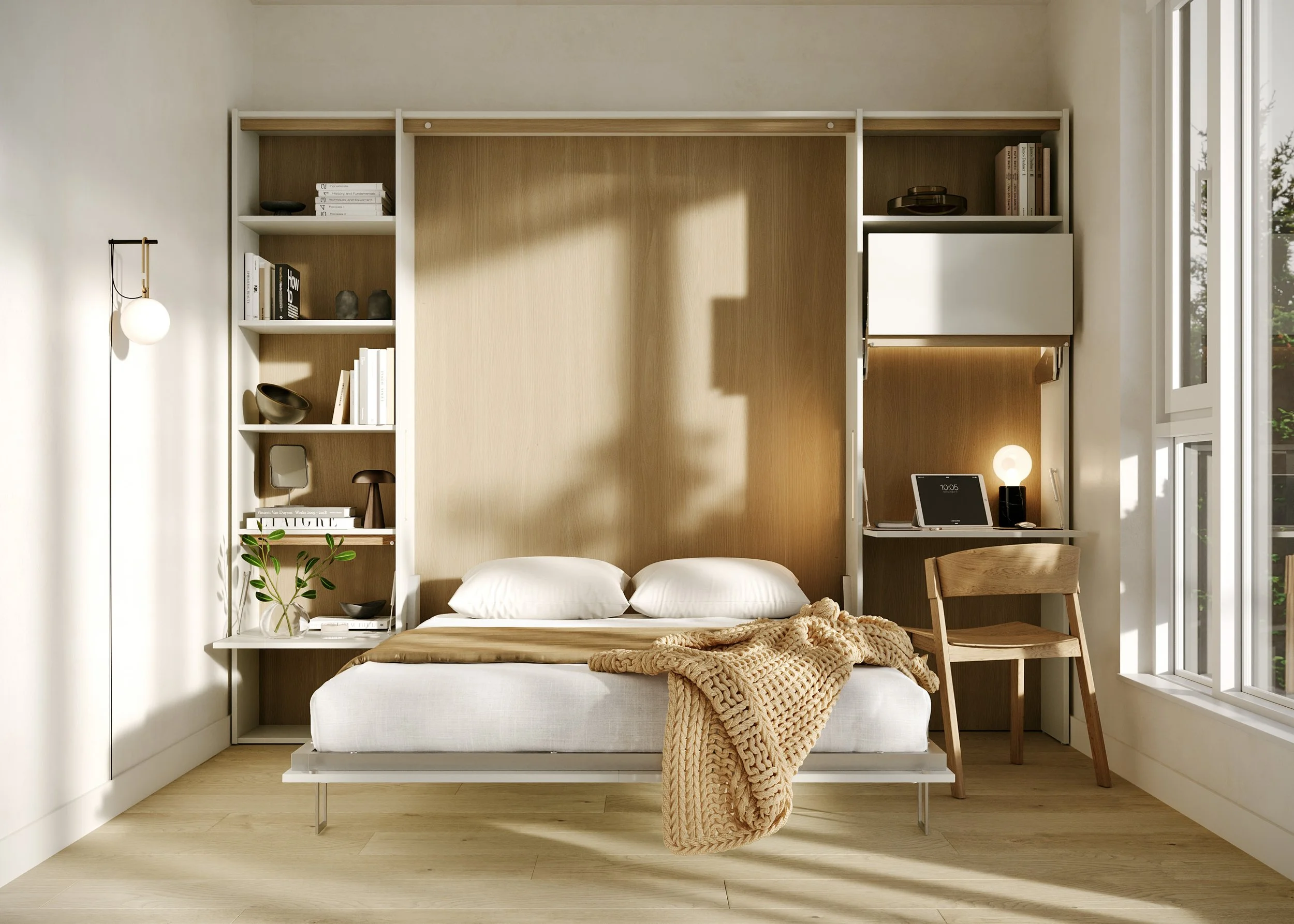 Sleeping units that integrate rest with storage and architecture. SLEEP includes beds, sofa beds, and headboard systems designed to maximize functionality without compromising calm. Whether used alone or combined with storage and work elements, these units transform bedrooms and studios into efficient, restful environments.